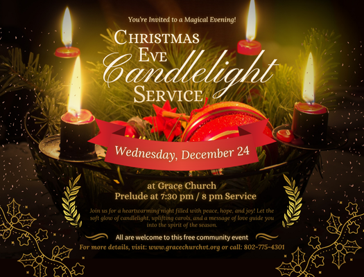 The Candlelight Evening Service begins at 8 pm this year, with a 7:30 pm musical prelude. We will all share in the beauty and comfort of lighting candles and singing “Silent Night” as the wonder and mystery of Christmas unfolds. Invite your friends and family to this breathtaking service.